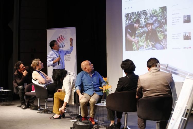 Luego de un corto receso, los invitados volvieron al auditorio de la Municipalidad de Vitacura para escuchar a los integrantes del 5to panel denominado “Naturaleza y Sociedad: Reconciliando las necesidades por el agua”, en que participó nuestro Director Científico Gustavo Chiang, quien se refirió a las consecuencias de la presencia de ciertos elementos químicos que están en ríos “Hay especies chilenas de peces están sometidas a una serie de alteraciones en su hábitat, hidrodinámica, y otros factores. Esto causa alteraciones en su reproducción». Además, habló la Coordinadora de la Asociación de Mujeres Sápara (tribu ecuatoriana), Gloria Ushigua Santi, quien se refirió a la deforestación de bosques en amazonas, «Nosotros no queremos la explotación del petróleo en la naturaleza ecuatoriana, porque ya vimos que en Perú ya no existen ni siquiera los bosques de allá»